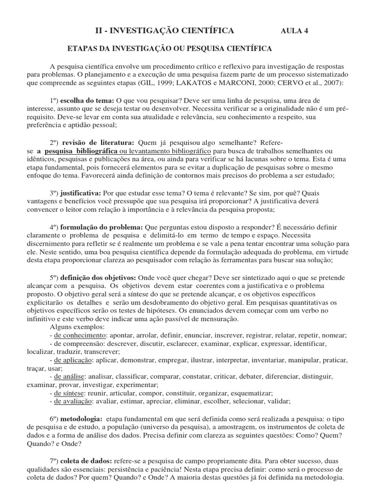 II - INVESTIGAÇÃO CIENTÍFICA AULA 4