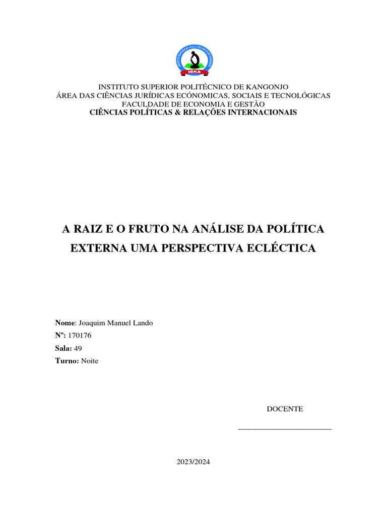 A RAIZ E O FRUTO NA ANÁLISE DA POLÍTICA EXTERNA UMA