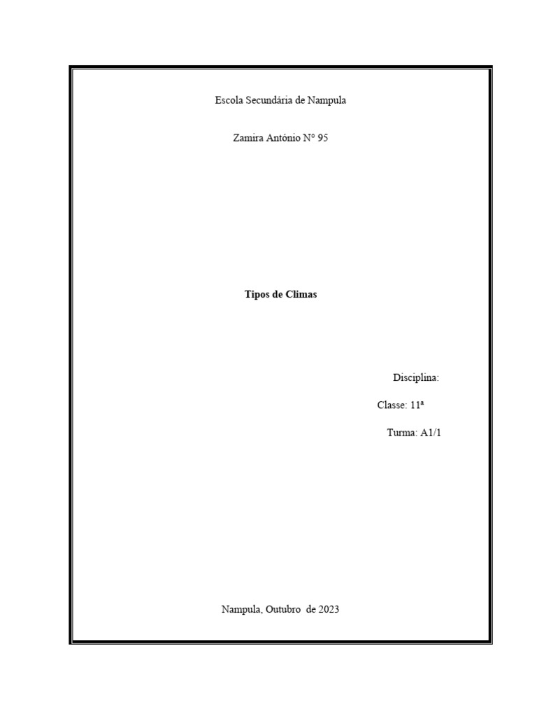 cinco tipos de clima e seus respectivos subclimas, os quais listamos abaixo.