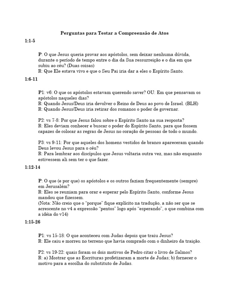 Perguntas para Testar a Compreensão de Atos