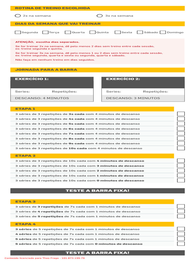 ex: treine segunda, quarta e sexta ou segunda, quarta e sábado.