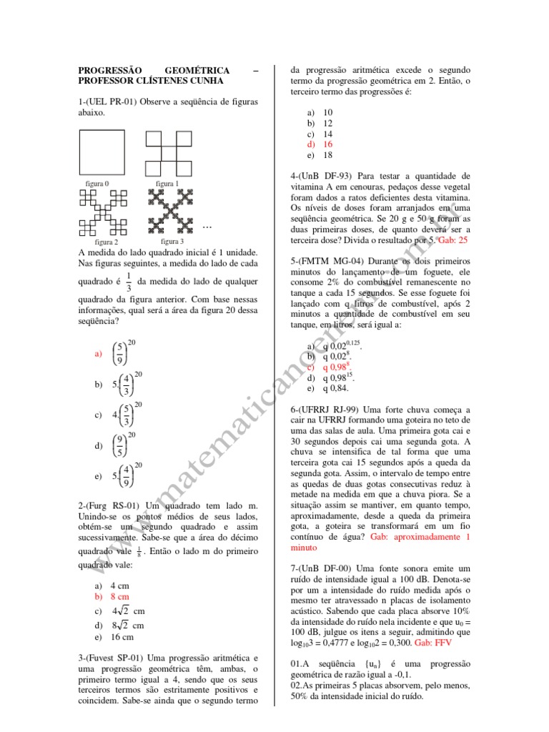 PROGRESSO GEOMTRICA PROFESSOR CLSTENES CUNHA