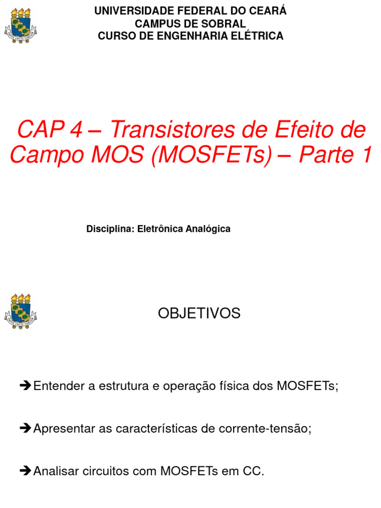 • 𝑖𝐷 = 𝑘𝑛 ′ 𝑣𝐺𝑆 − 𝑉𝑡 𝑣𝐷𝑆 − 𝑣𝐷𝑆 2 (Região de triodo)