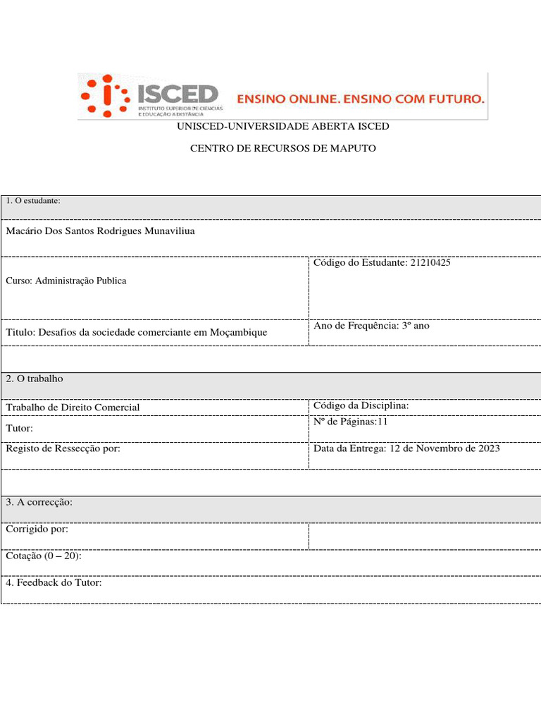 Titulo: Desafios da sociedade comerciante em Moçambique