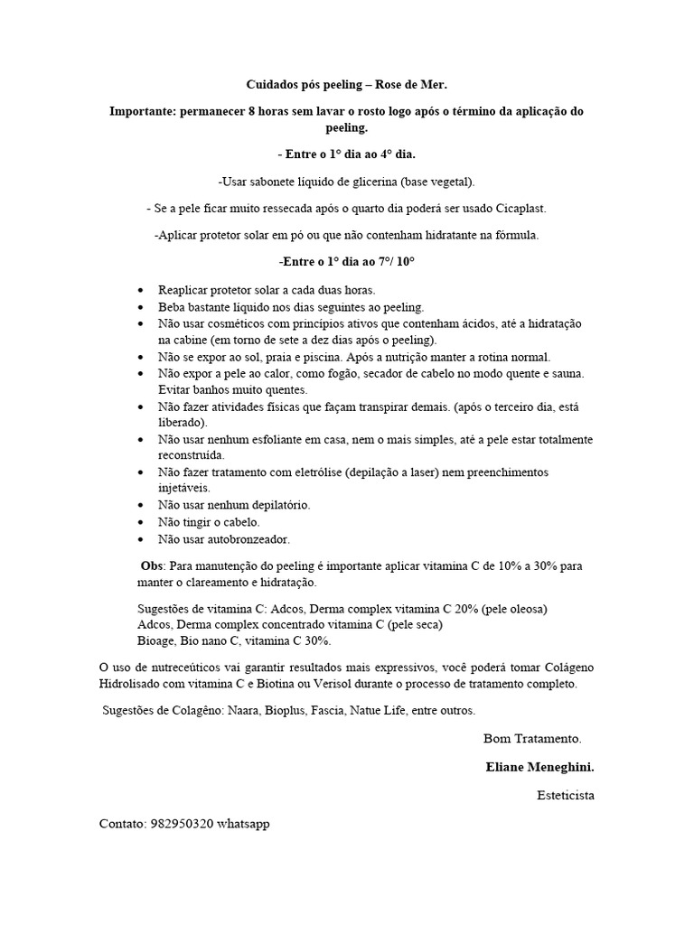 Obs: Para manutenção do peeling é importante aplicar vitamina C de 10% a 30% para