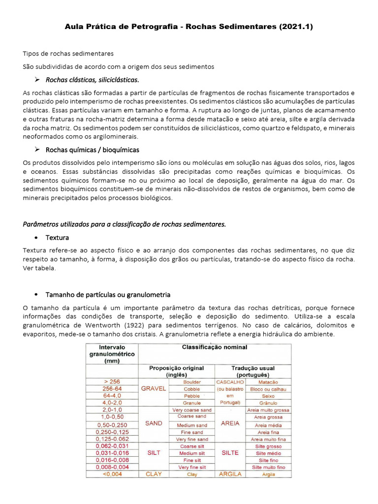granulométrica de Wentworth (1922) para sedimentos terrígenos. No caso de calcários, dolomitos e