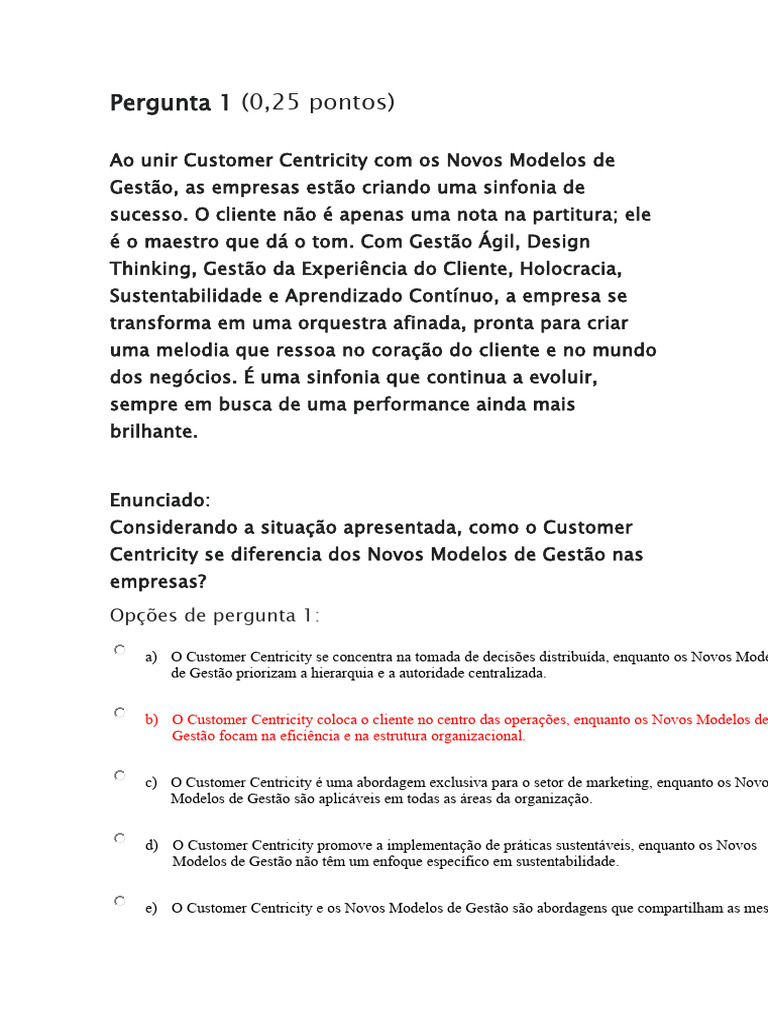 b) O Customer Centricity coloca o cliente no centro das operações, enquanto os Novos Modelos de