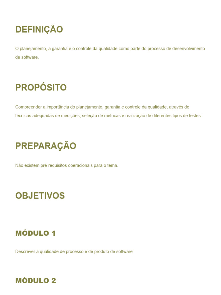 Neste módulo, destacamos a importância das medições e métricas para a qualidade do software.