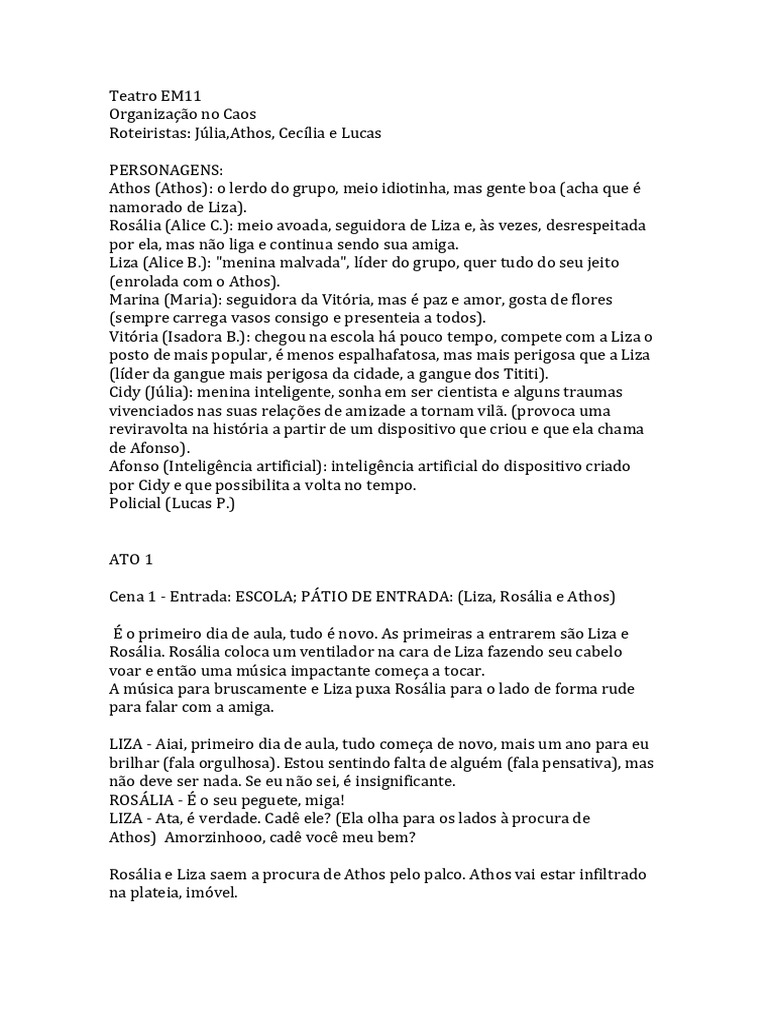Roteiristas: Júlia,Athos, Cecília e Lucas