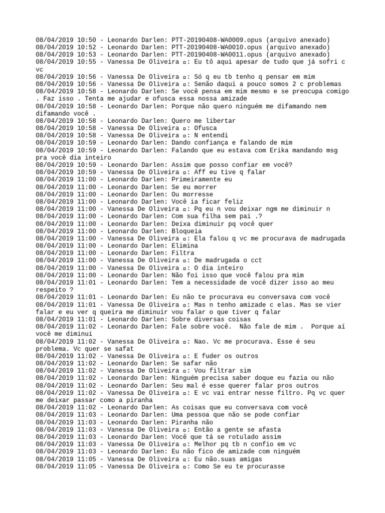 08/04/2019 13:03 - Vanessa De Oliveira 🥰: Que fala mal de mim p de fora