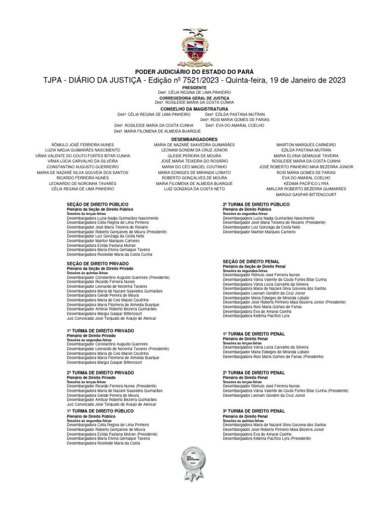 TJPA - DIÁRIO DA JUSTIÇA - Edição nº 7521/2023 - Quinta-feira, 19 de Janeiro de 2023
