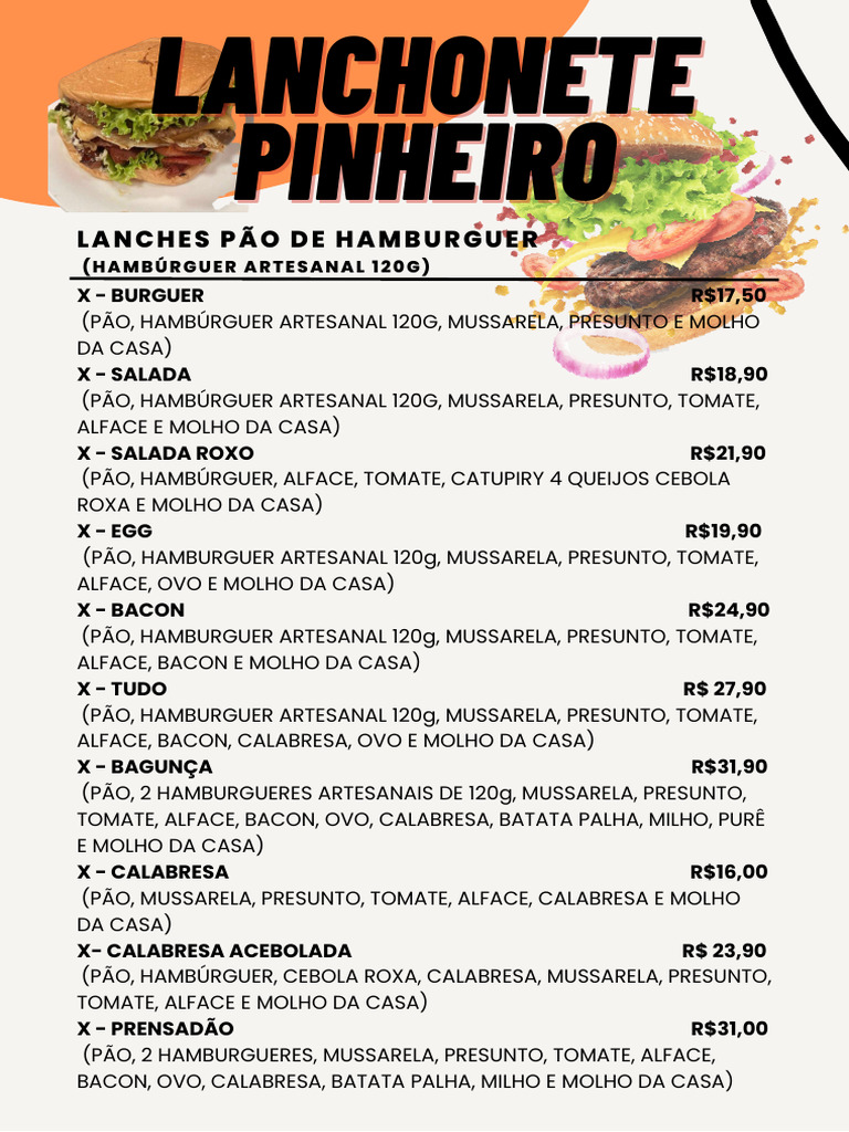 HAMBURGUER 120G R$7,00 QUEIJO R$2,00