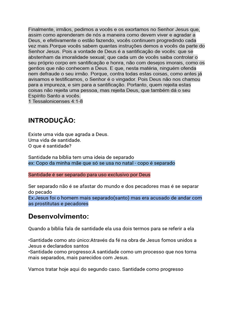 Senhor Jesus. Pois a vontade de Deus é a santificação de vocês: que se