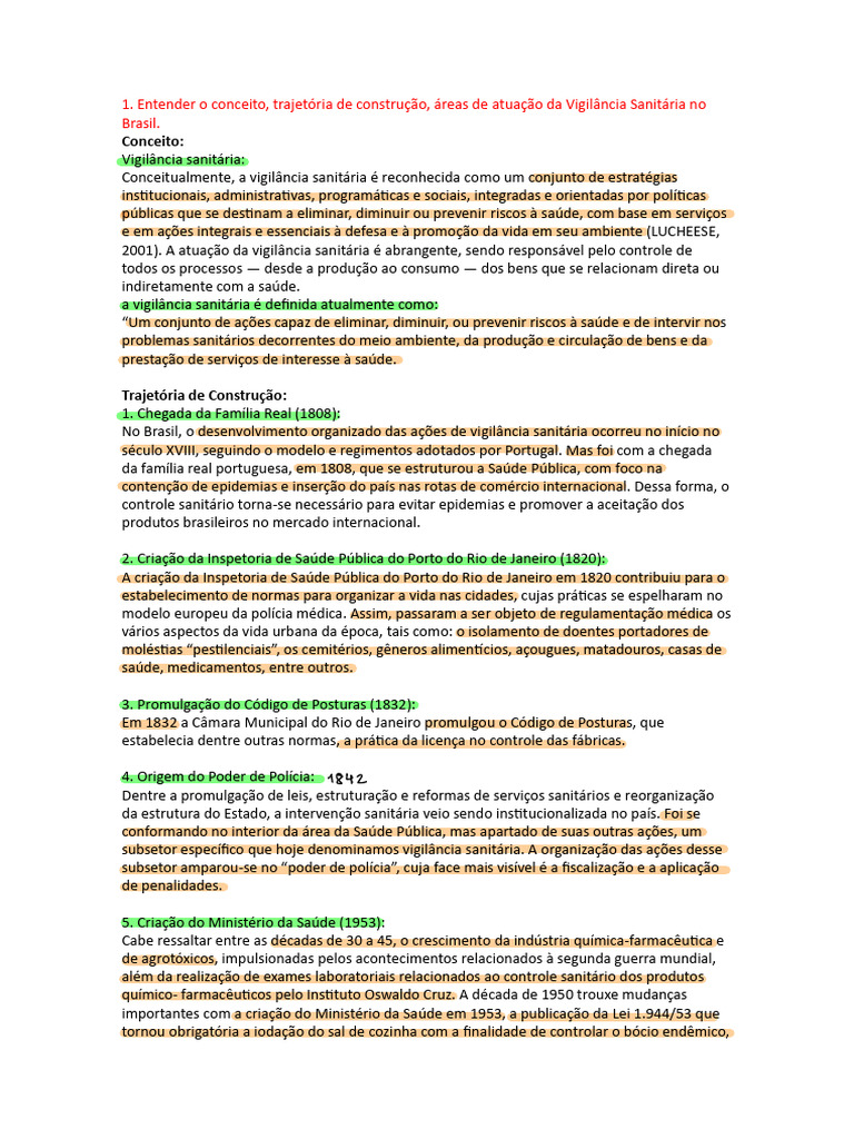 Entender o conceito, trajetória de construção, áreas de atuação da Vigilância Sanitária no
