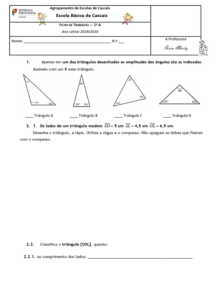 2. 1. Os lados de um triângulo medem SO = 5 cm SL = 4,5 cm OL = 6,5 cm.