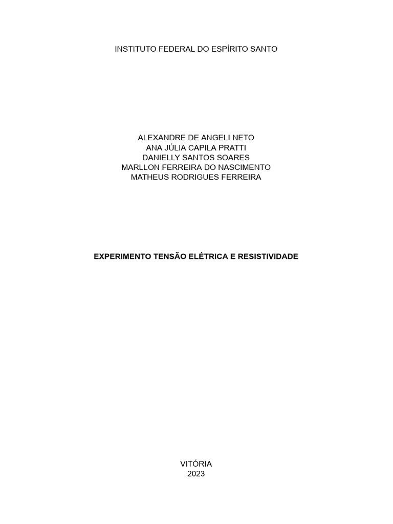 EXPERIMENTO TENSÃO ELÉTRICA E RESISTIVIDADE