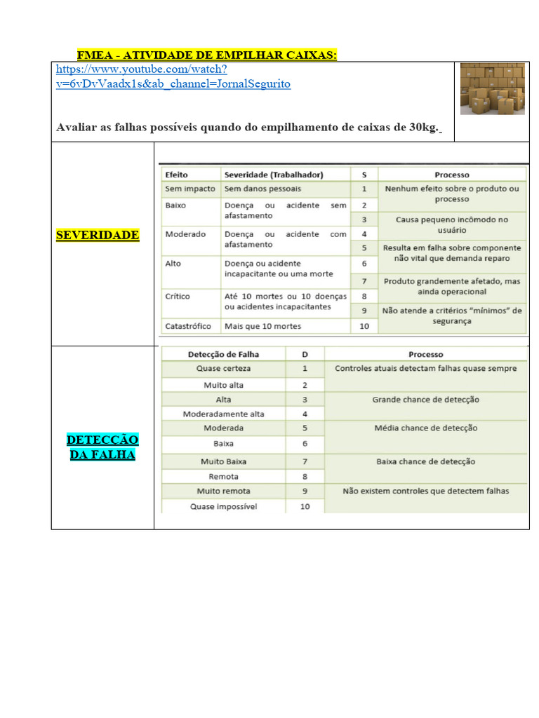 FMEA - ATIVIDADE DE EMPILHAR CAIXAS: