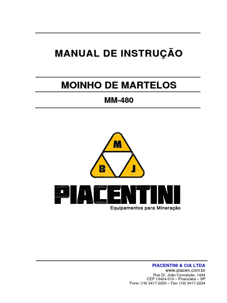 equipamentos Piacentini. Leia-o com atenção antes de iniciar