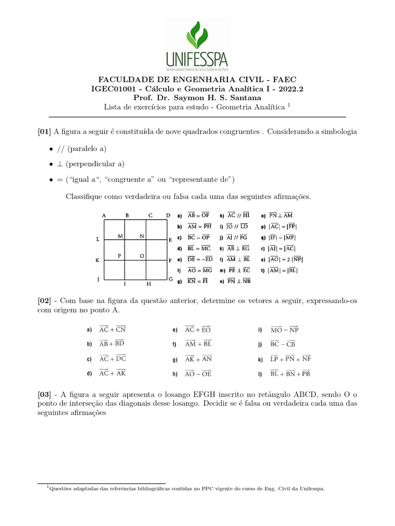 IGEC01001 - Cálculo e Geometria Analı́tica I - 2022.2