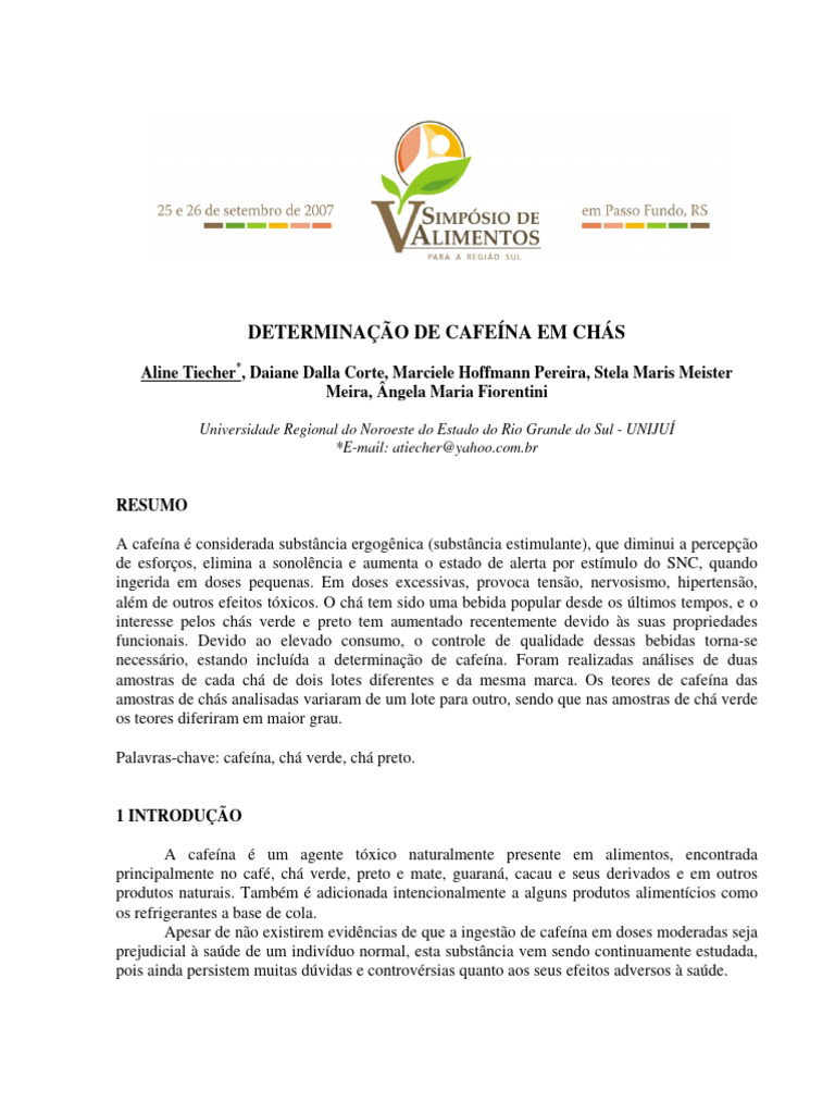 Palavras-chave: cafeína, chá verde, chá preto.