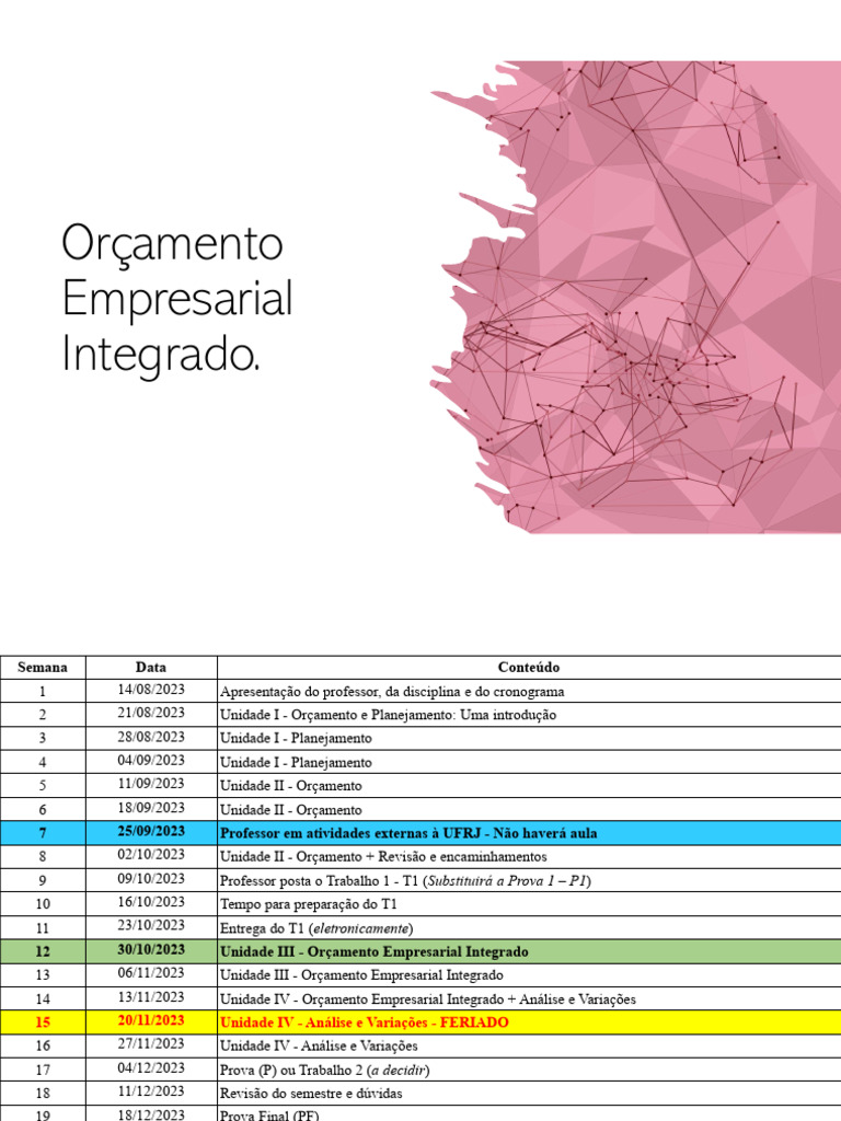14 13/11/2023 Unidade IV - Orçamento Empresarial Integrado + Análise e Variações