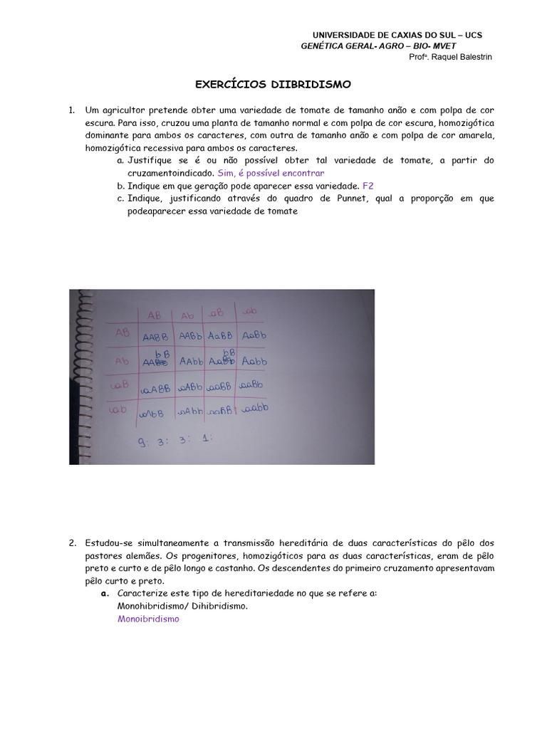 EXERCÍCIOS DIIBRIDISMO