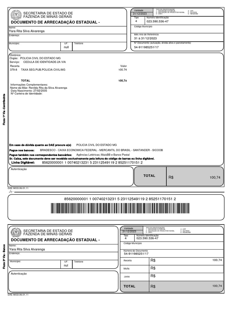 DOCUMENTO DE ARRECADAÇÃO ESTADUAL - 4 023.590.536-47