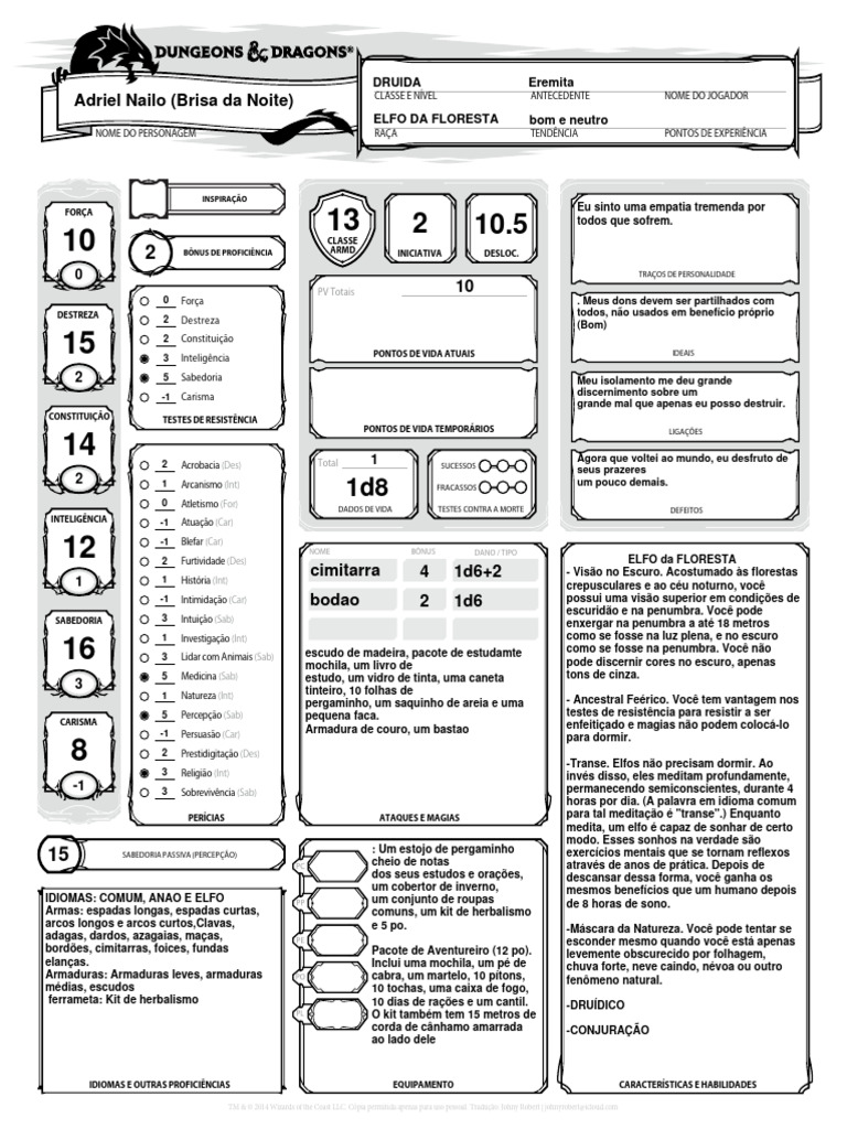 NOME DO PERSONAGEM RAÇA TENDÊNCIA PONTOS DE EXPERIÊNCIA