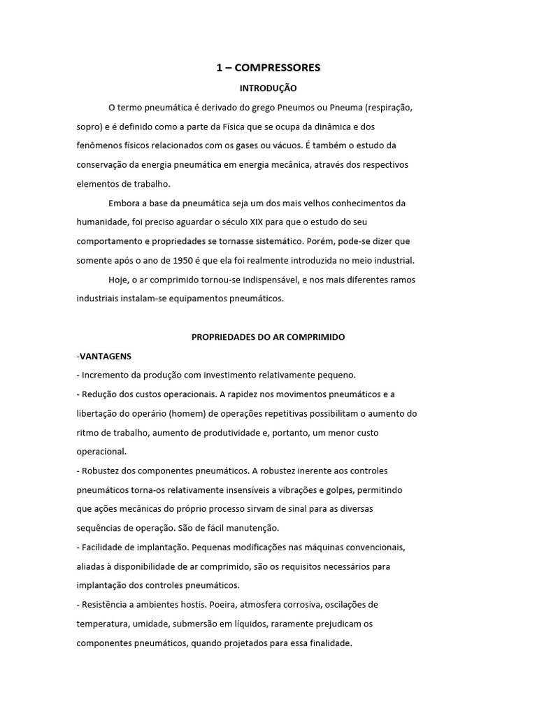 Para a produção de ar comprimido são necessários compressores, os quais