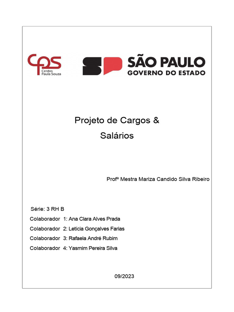 de cargos e salários que serão aplicados a partir deste, em toda organização.
