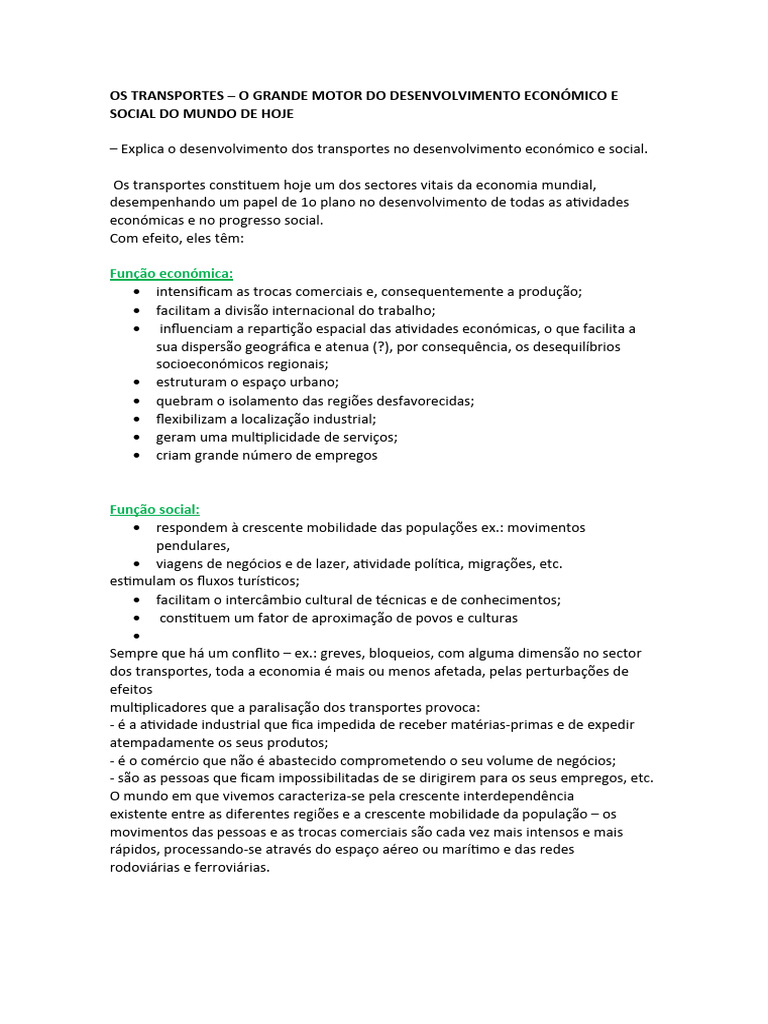 – Explica o desenvolvimento dos transportes no desenvolvimento económico e social.