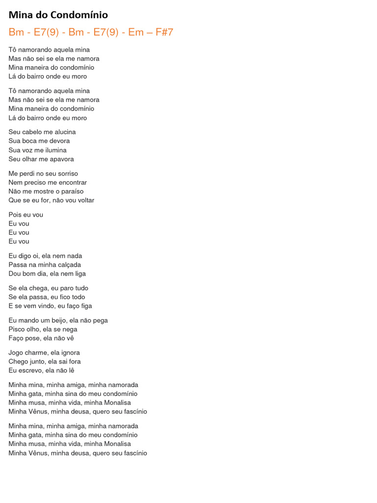 Fm – Bbm – Cm Ponte: Gm – Dm Refrão: Gm – Bb – Gm – F