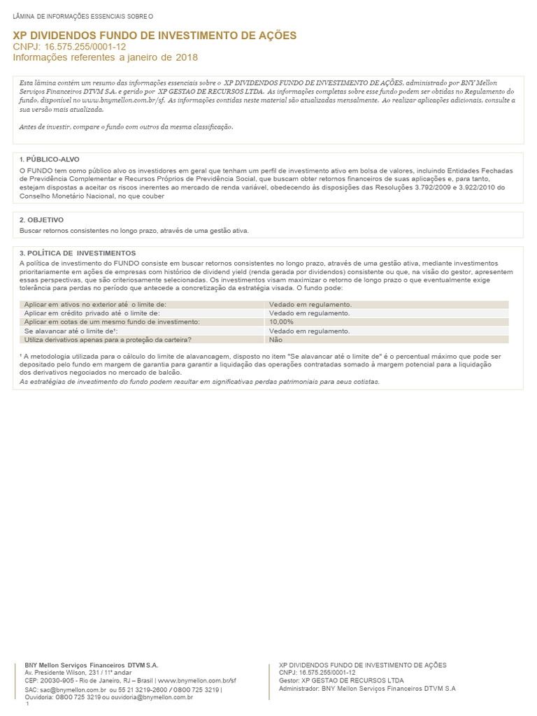 Esta lâmina contém um resumo das informações essenciais sobre o XP DIVIDENDOS FUNDO DE INVESTIMENTO DE AÇÕES, administrado por BNY Mellon