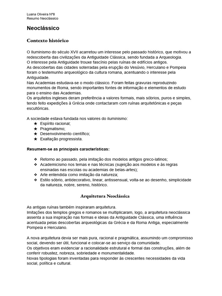 Resumo Neoclássico