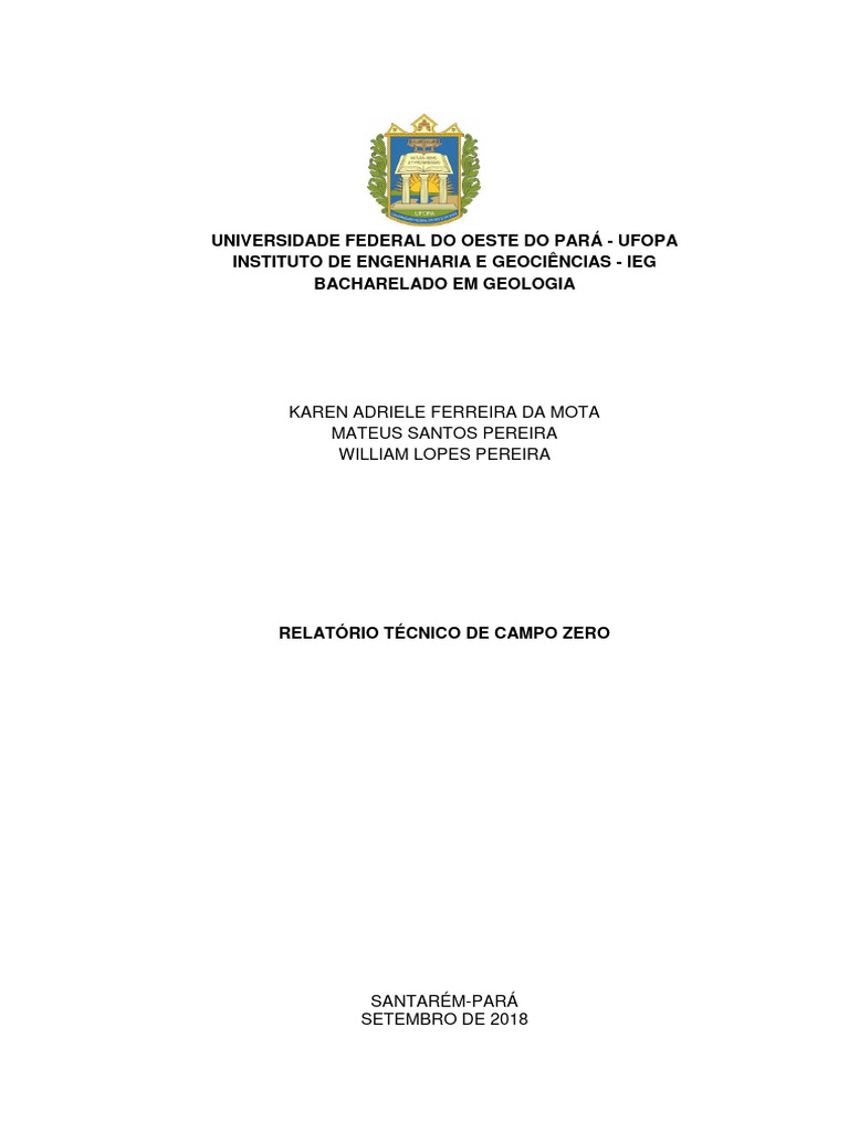 RELATÓRIO TÉCNICO DE CAMPO ZERO