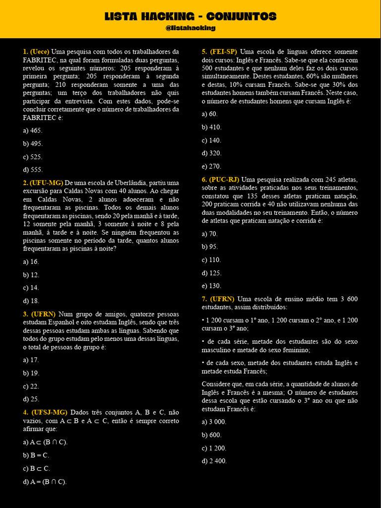 revelou os seguintes números: 205 responderam à 500 estudantes e que nenhum deles faz os dois cursos