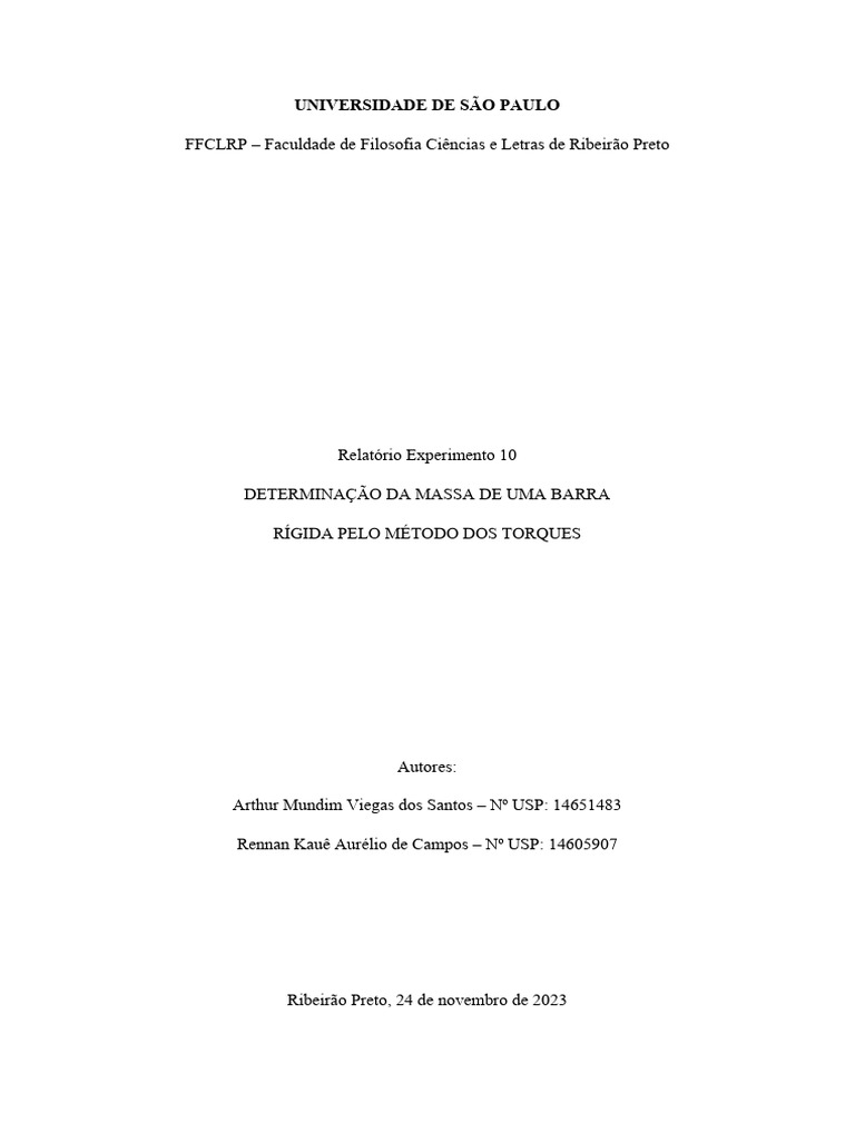 primeira. Conclui-se, portanto, que é viável determinar a massa de uma barra rígida por