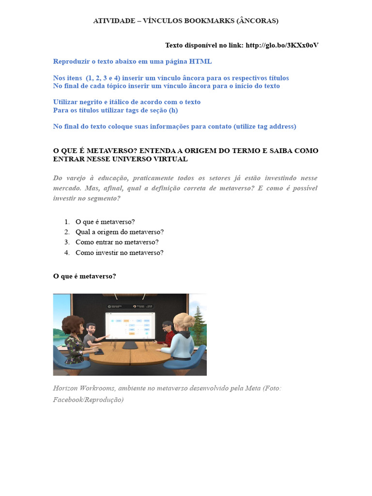 ATIVIDADE – VÍNCULOS BOOKMARKS (ÂNCORAS)