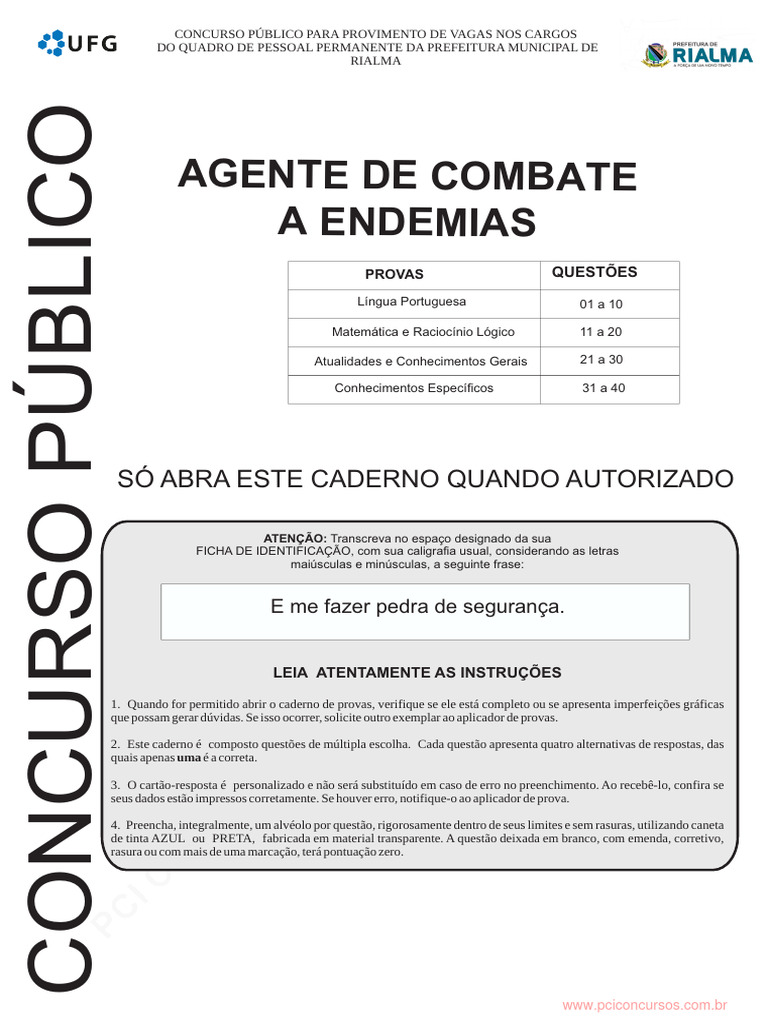 que possam gerar dúvidas. Se isso ocorrer, solicite outro exemplar ao aplicador de provas.