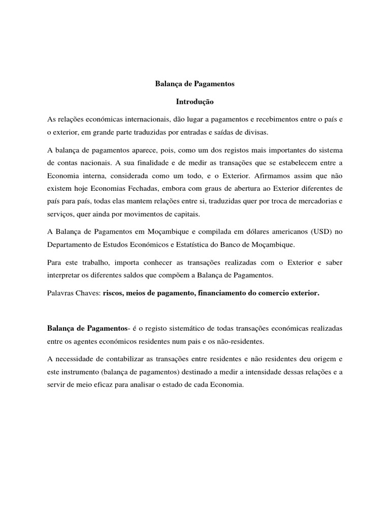 Estrutura da Balança de Pagamentos em Moçambique