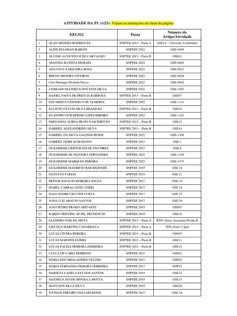 ATIVIDADE DA P1 (1/23): Vejam as instruções no final da página