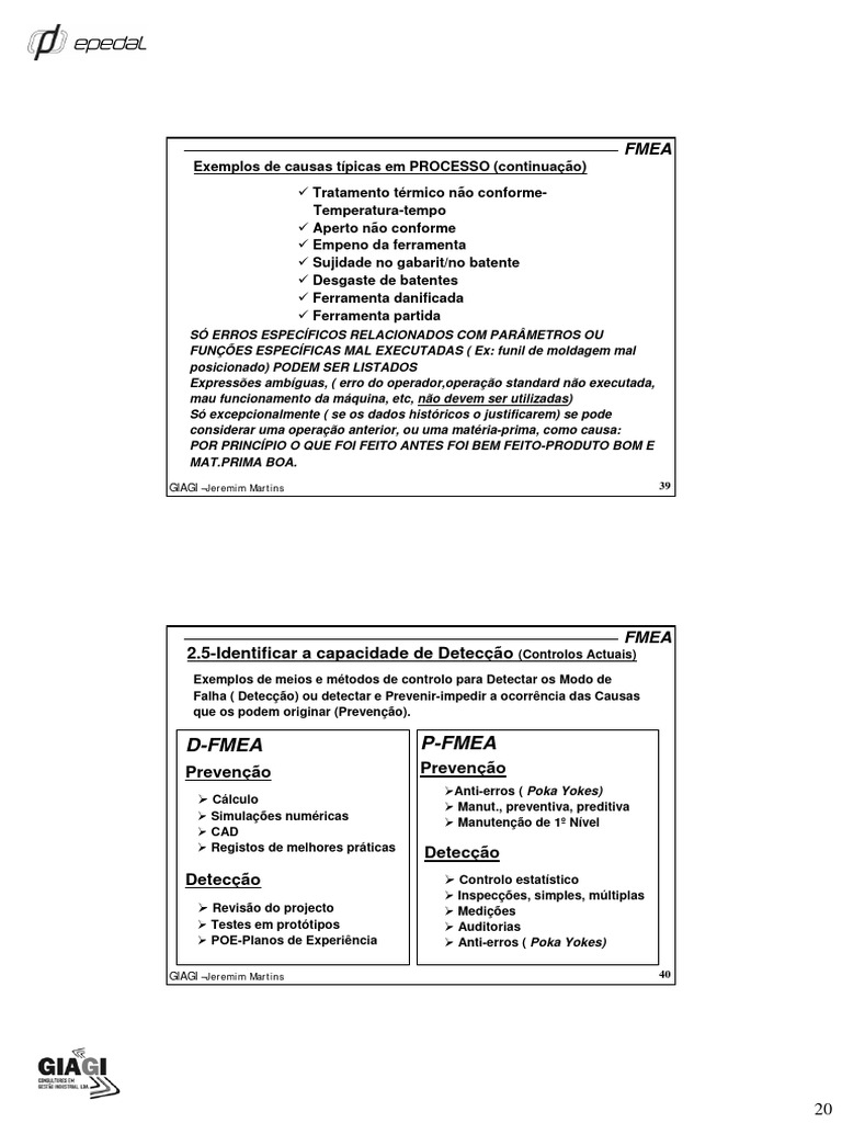 Falha ( Detecção) ou detectar e Prevenir-impedir a ocorrência das Causas
