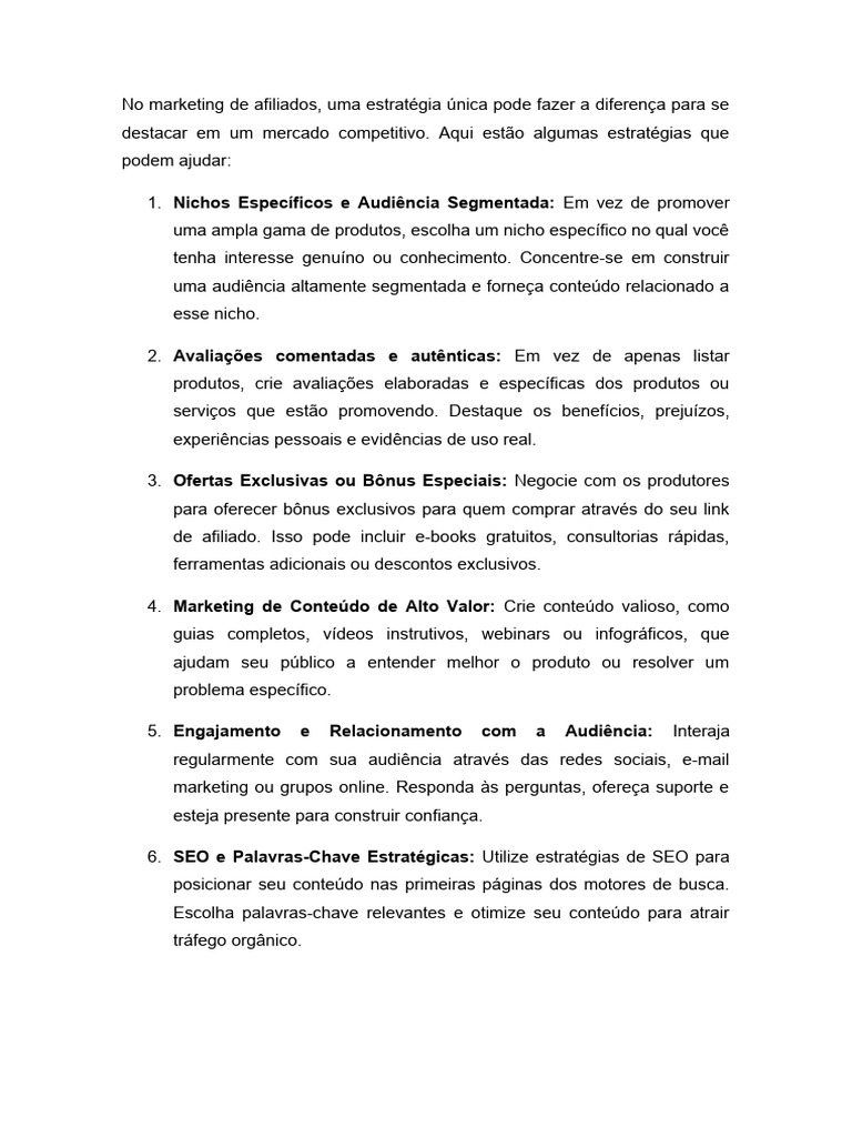 de afiliado. Isso pode incluir e-books gratuitos, consultorias rápidas,