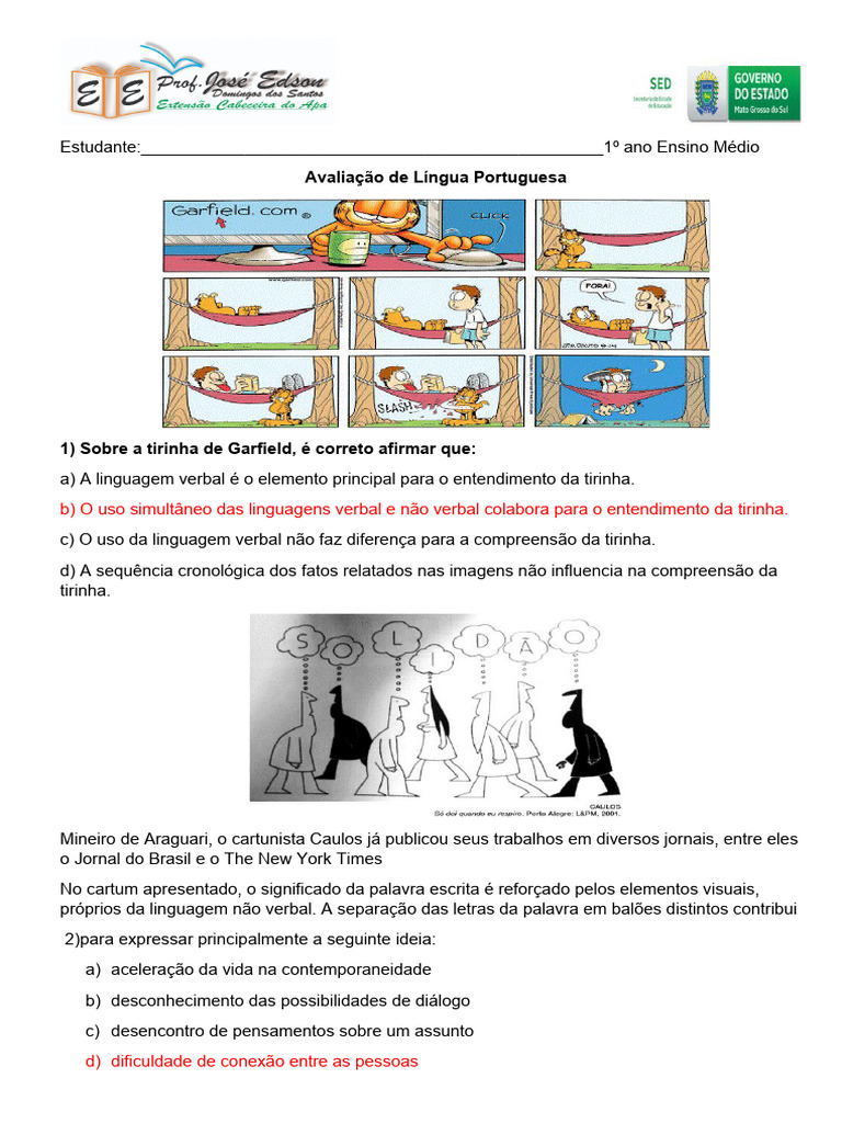 1) Sobre a tirinha de Garfield, é correto afirmar que: