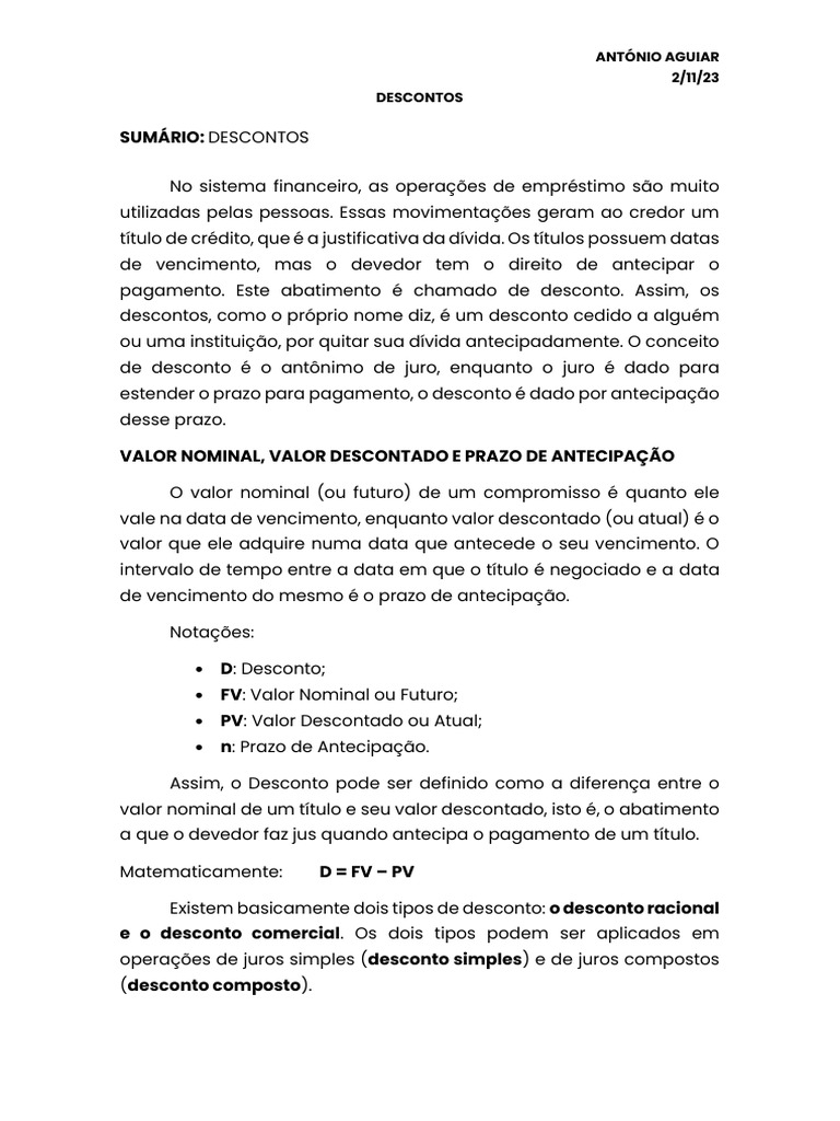 juros. A diferença é que o desconto corresponde a uma operação de