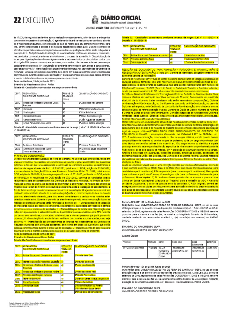 Feira de Santana, 23 de junho de 2021.