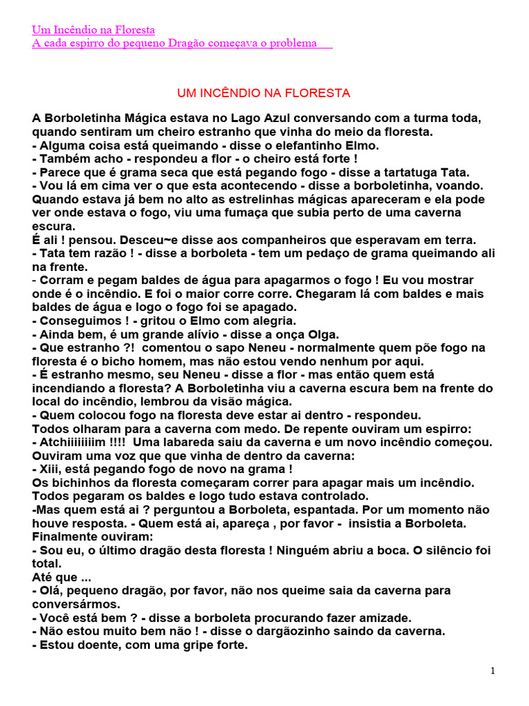 - Sou eu, o último dragão desta floresta ! Ninguém abriu a boca. O silêncio foi