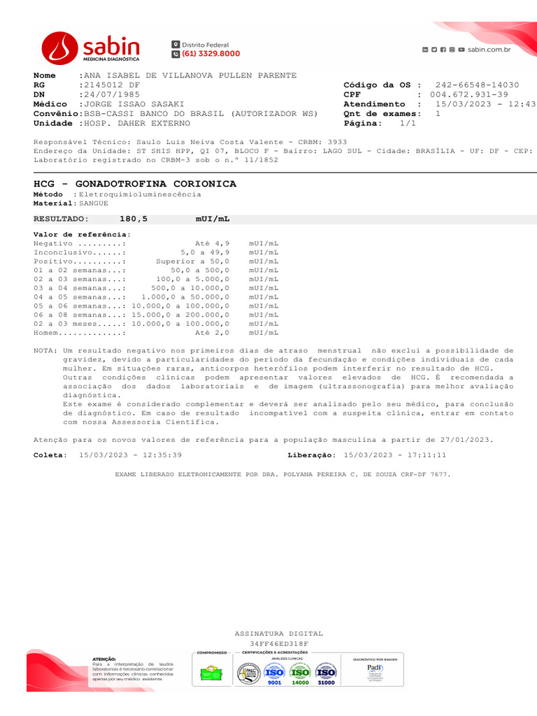 Coleta: 15/03/2023 - 12:35:39 Liberação: 15/03/2023 - 17:11:11