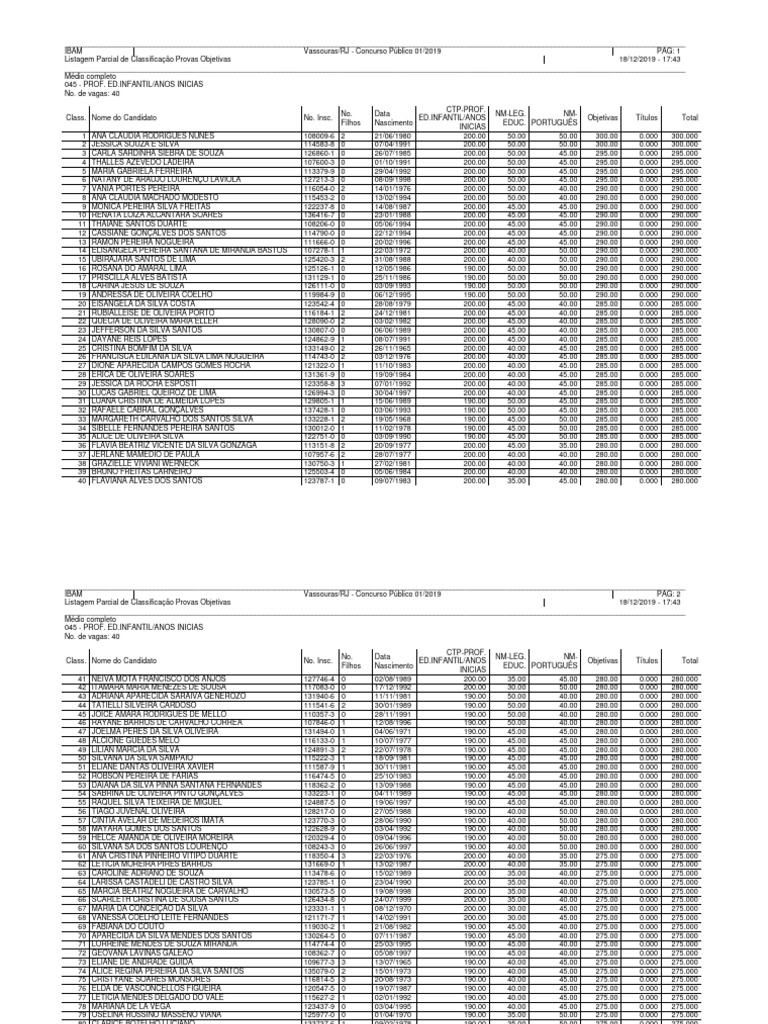 Listagem Parcial de Classificação Provas Objetivas 18/12/2019 - 17:43