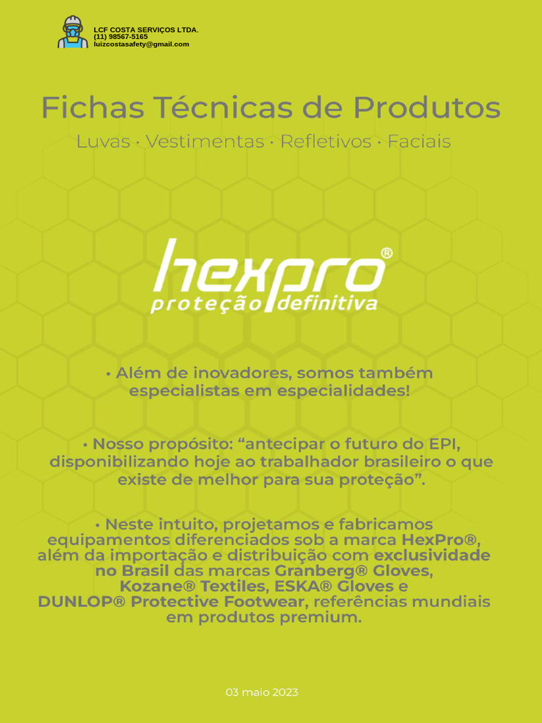 Aplicações: Proteção das mãos contra abrasão, corte, rasgo, perfuração, impactos,